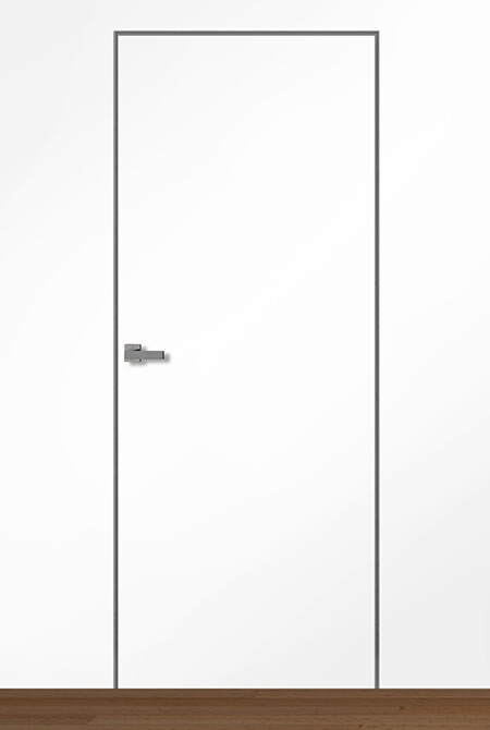 «INVISIBLE» – наружнего открывания с алюминиевой кромкой с 4х сторон, в комплекте 2 скрытых петли и замок.